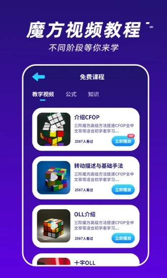 app含有魔方教程、魔方公式、魔方知识等学习资料。