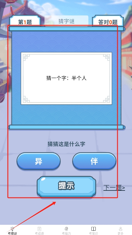 考考脑力专注于益智娱乐的考考脑力软件,通过考猜谜,考成语,考脑力和考常识四个模块,提供丰富多样的趣味题目,帮助用户在挑战中加深记忆与理解,通过答题记录用户的学习成就,激励持续进步,促进思维活跃与智力提升。