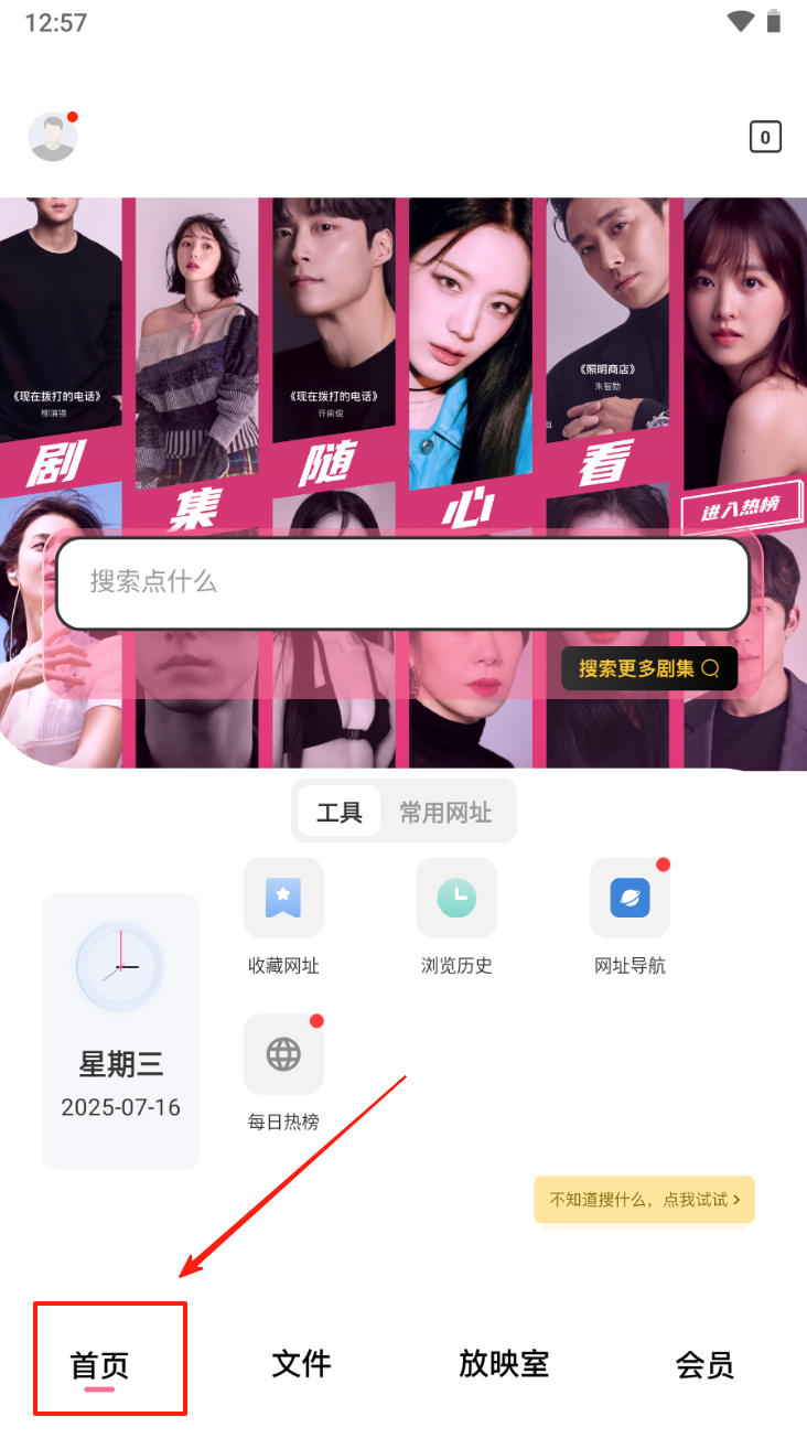 3、点击首页的“搜索”框,输入关键词搜索剧集。