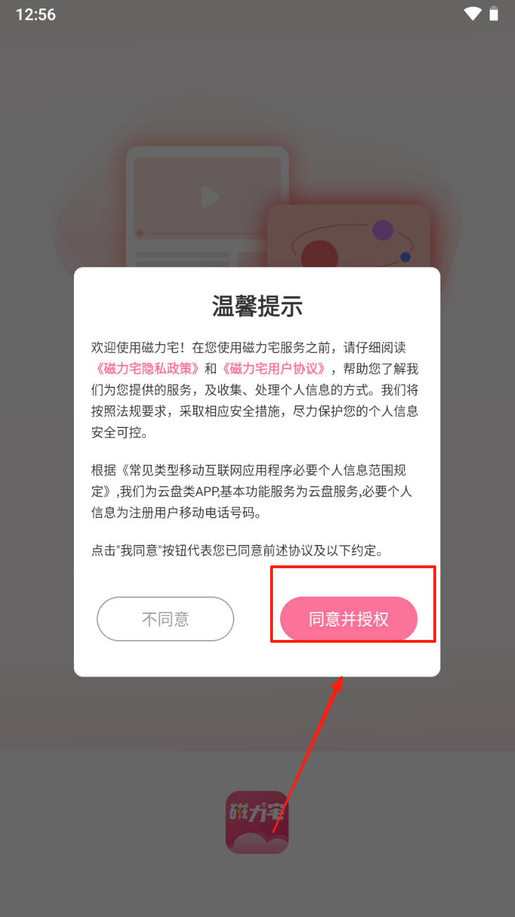 1、阅读并同意《磁力宅隐私政策》和《用户协议》,点击“同意并授权”。