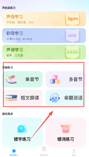 4、丰富多样的题库,从基础发音到应用表达,应有尽有,满足不同学习阶段的需要。