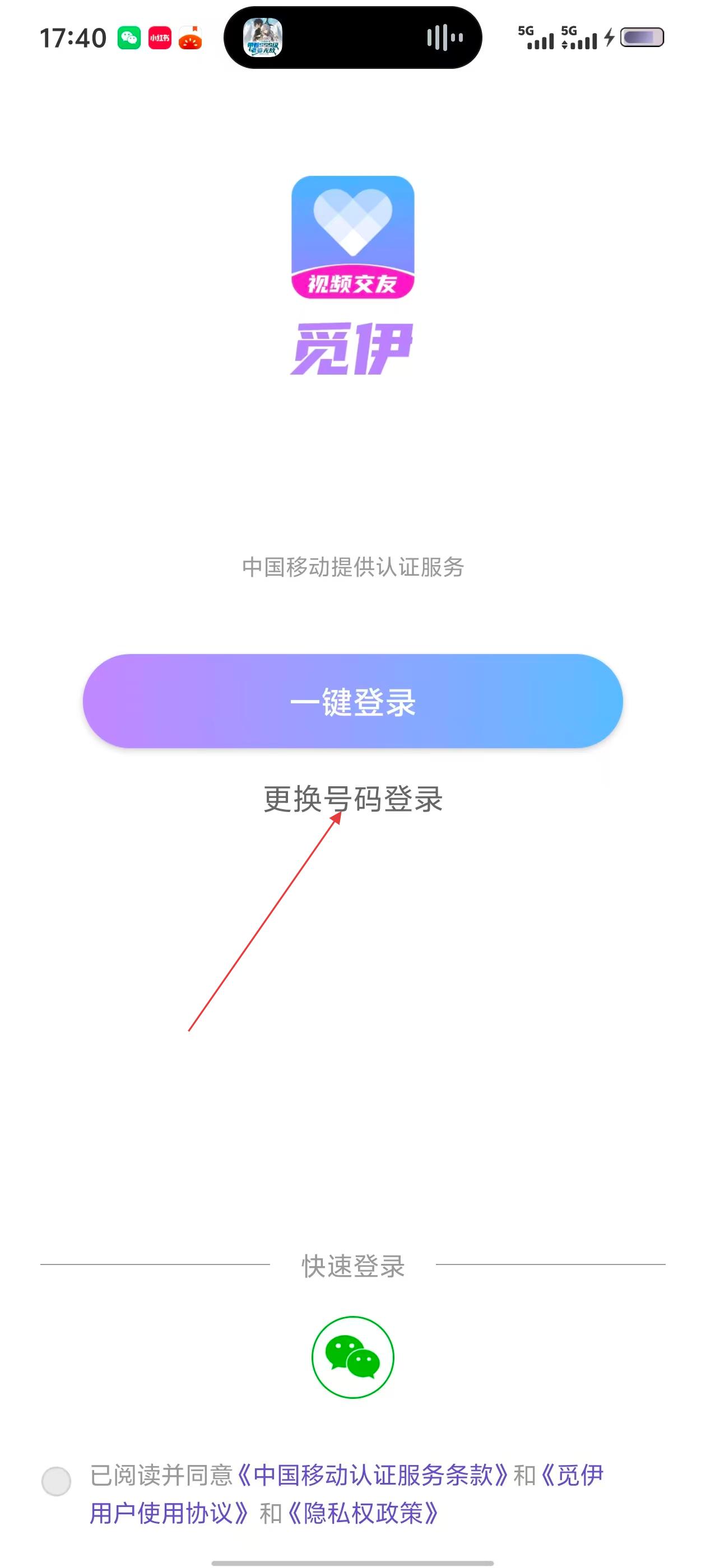 1、在登录页面,若需更换号码登录,点击【更换号码登录】,进入输入手机号页面。