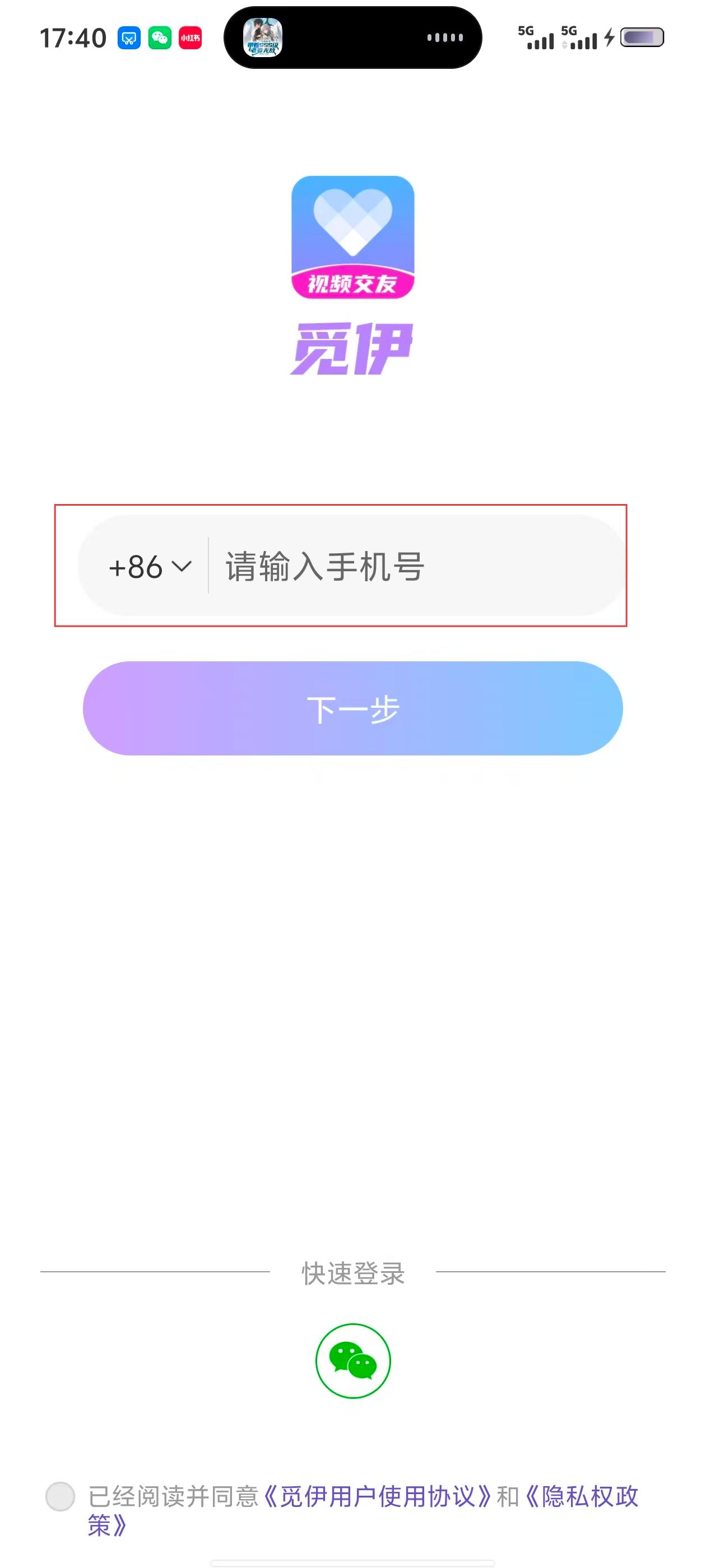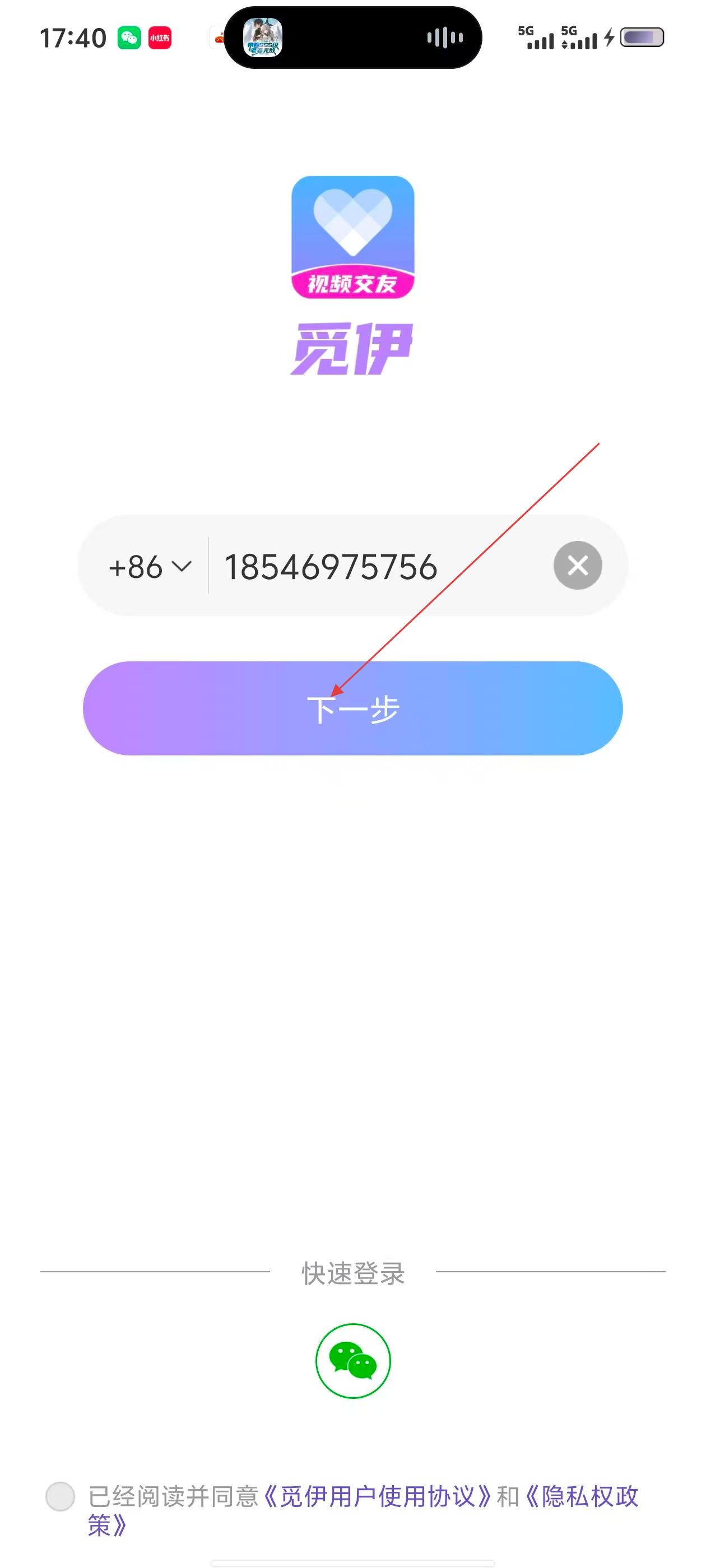 2、在输入手机号页面,输入要登录的手机号,然后点击【下一步】。