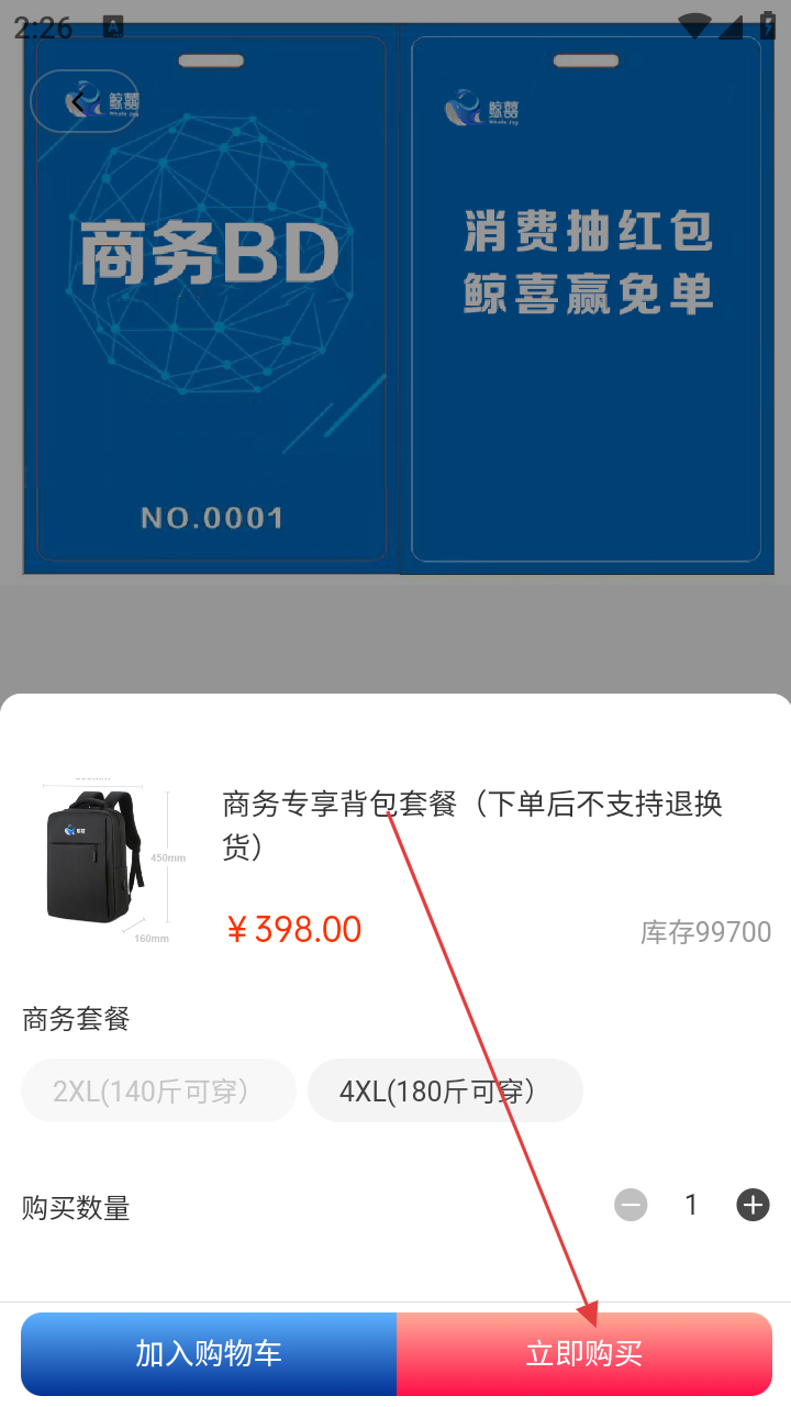 3、详情页点【立即购买】,选规格、数量。