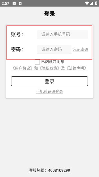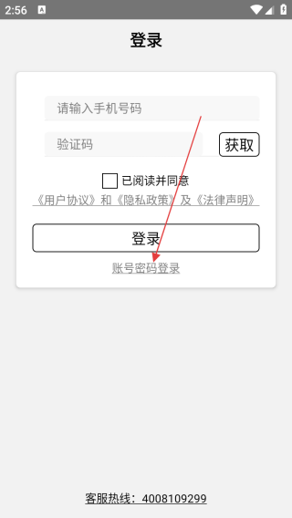 2、进入登录界面输入手机号和密码。