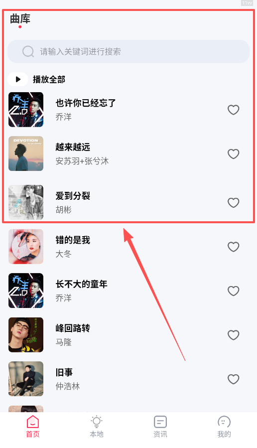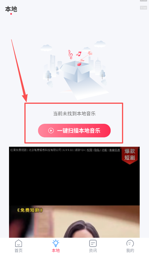 2、在本地音乐页面,如果系统没有自动扫描到你的本地音频,可以手动点击一键扫描本地音乐功能。