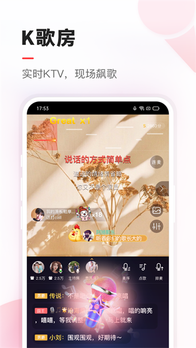 3、直播互动:支持用户进行唱歌直播,能通过直播与粉丝互动,进行歌唱表演、答疑解惑或者分享生活趣事。