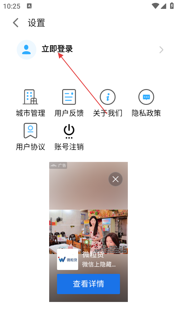 2、进入【设置】后,若需登录账号,点击【立即登录】选项完成账号关联。