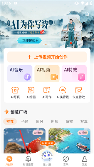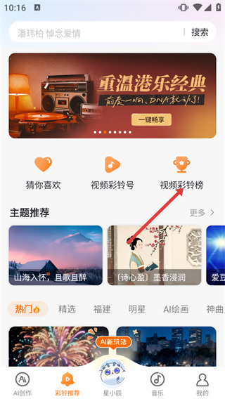 1、进入软件主界面,点击底部【彩铃推荐】选项,切换至彩铃相关内容页面。