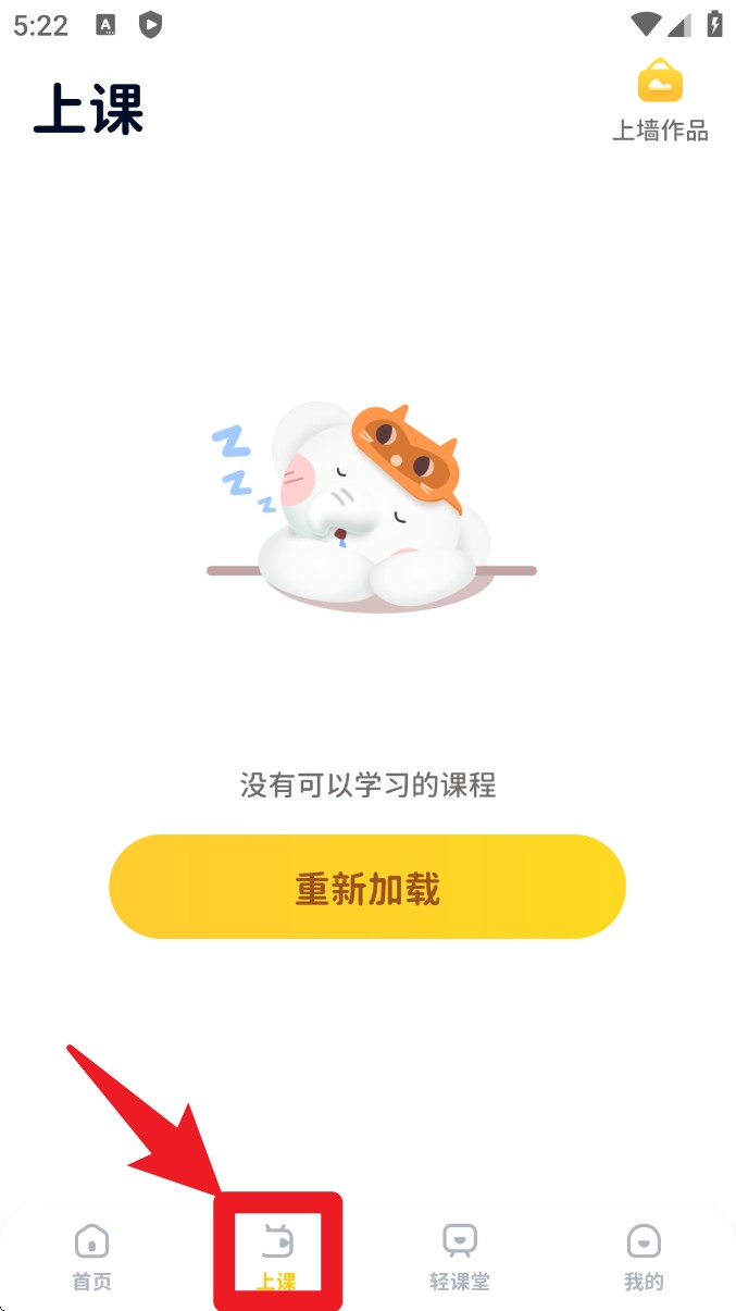 3. 点击底部导航栏上课进入课程学习页面,如暂无课程可学习可点击下方按钮重新加载。