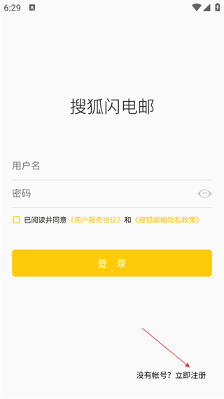 1、若没有搜狐邮箱帐号,在【搜狐闪电邮】登录界面点击【立即注册】,即可进入注册流程。
