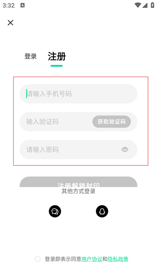 4、在注册界面,输入手机号码、验证码和密码后,点击【注册解锁封印】按钮,即可完成注册操作。