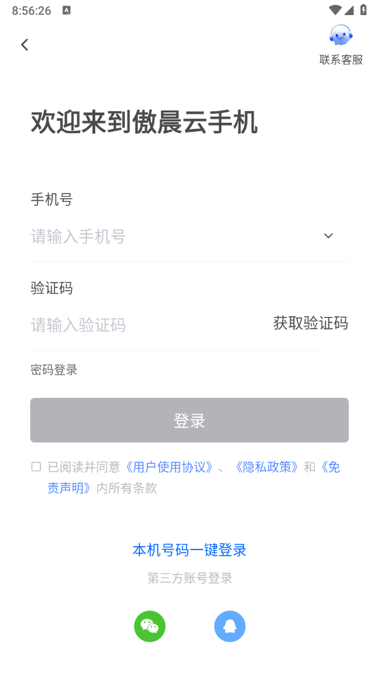您可以通过实体手机自带的应用市场(对应手机品牌,比如小米13就进入小米应用市场)搜索“傲晨云”来操作;要是没找到,也能在浏览器输入www.aochenyun.com,从我们的官网进行使用。首次使用傲晨云手机端后,需要先注册才能登录,注册时填写手机号并收取验证码就可以啦~