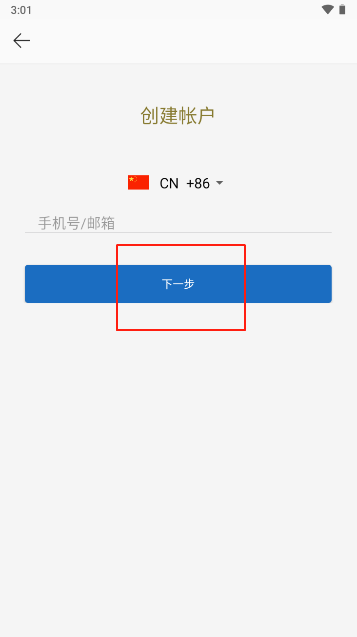 3、输入手机号或邮箱:在创建账户页面输入您的手机号或邮箱,然后点击“下一步”。