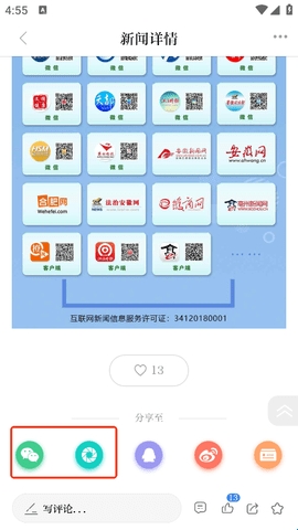 3、还有一种方法就是下滑到文章最下面,可以看到“分享至”,选择“微信”分享给朋友,或直接分享到朋友圈发送。