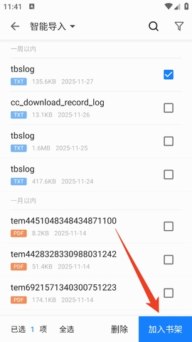 4、然后就可以将你要导入的本地小说导入到书架中了。