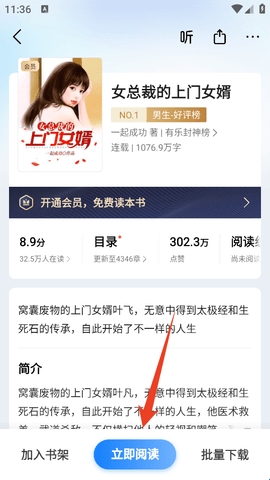 1、我们找到自己想读的书后,点击“立即阅读”。