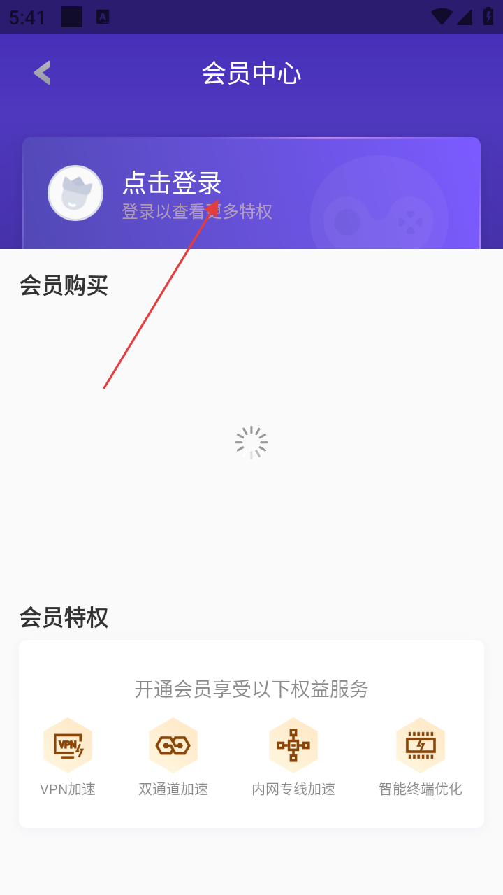 3、在会员中心页面,点击【点击登录】,进入登录方式选择界面,准备登录账号。