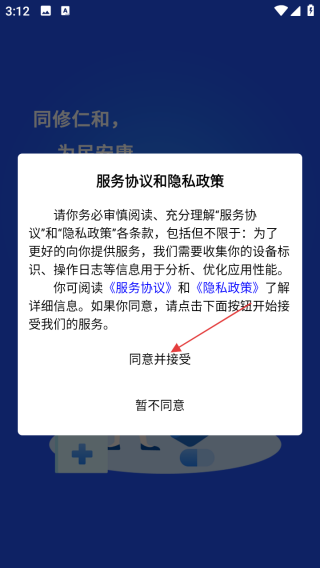1、打开应用查看协议点击同意并接受。
