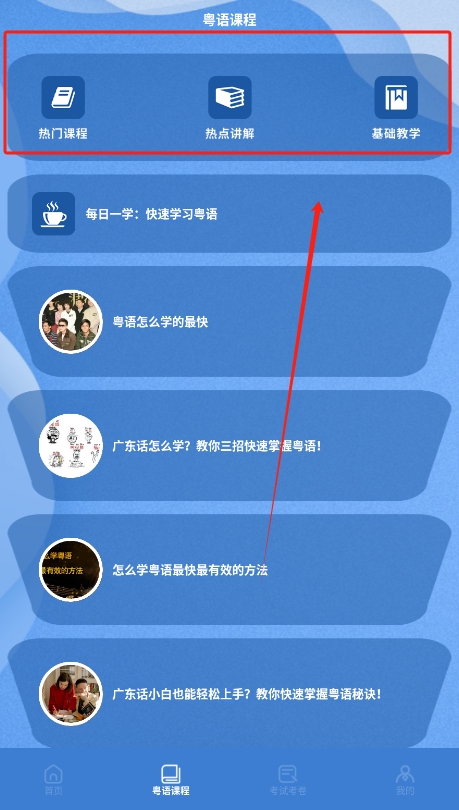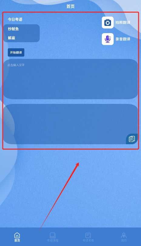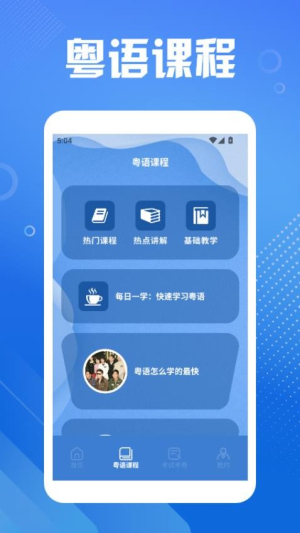 2、在主页中选择需要的功能,例如粤语翻译或视频课程,系统会根据用户需求提供相应的学习内容及工具。