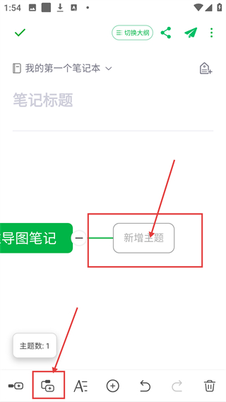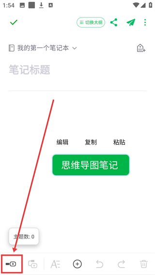 2进入思维导图编辑页面后,点击左下角的主题按钮,就可以添加新的主题节点,用来搭建笔记的结构了。