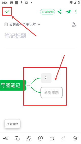 4、完成主题添加后,点击左上角的对勾按钮,即可保存当前思维导图的编辑内容,结束创作流程。
