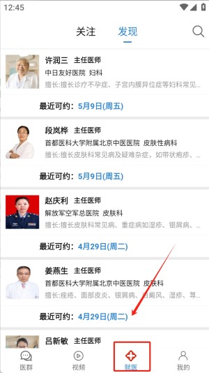 1、首先,点击“医群”图标,进入医疗咨询群组页面,在这里可以查看和加入不同的医疗咨询群组。