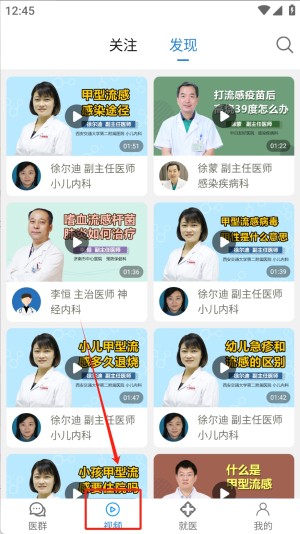 2、接着,点击“视频”图标,进入视频咨询页面,在这里可以观看医生的视频咨询内容,获取健康知识。