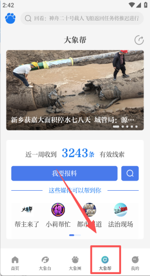 4、打开大象帮点“我要报料”,填写停水线索等小莉帮忙跟进。