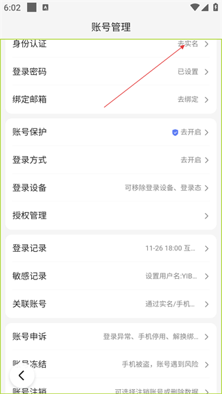 4、在【账号管理】页面,点击【身份认证】即可进入身份认证流程进行认证。