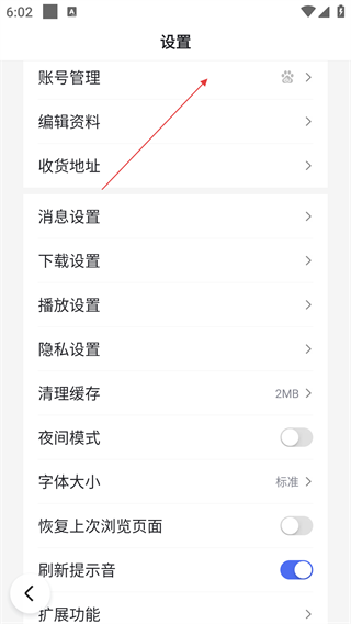 3、进入【设置】界面,可管理账号、调整各类配置,点击【账号管理】可进入对应页面处理账号相关操作。