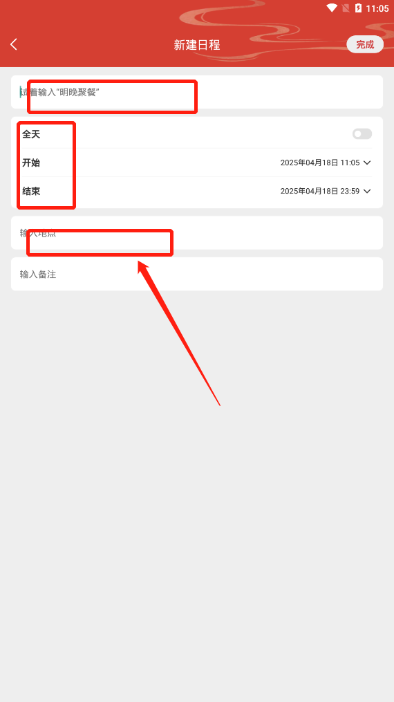 3、打字输入你计划要完成的事件,计划的开始时间和结束时间。