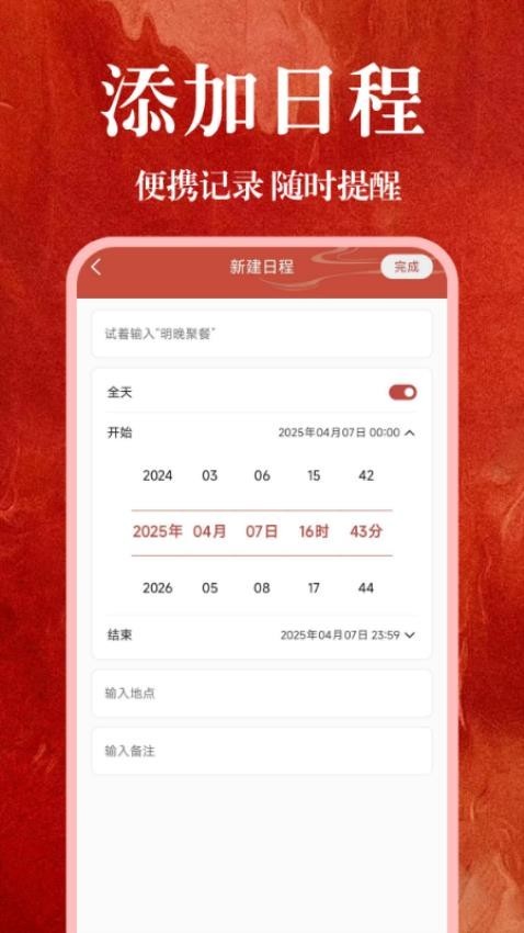 4、高效提醒功能:通过日程提醒功能,确保用户不会错过任何一个重要的日子或安排。