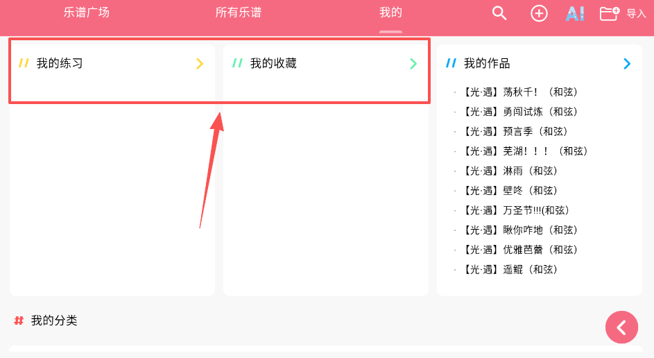 4、记得定期在乐谱广场的我的练习中管理自己的作品和收藏,你创作或收藏的乐谱都会在这里列出。