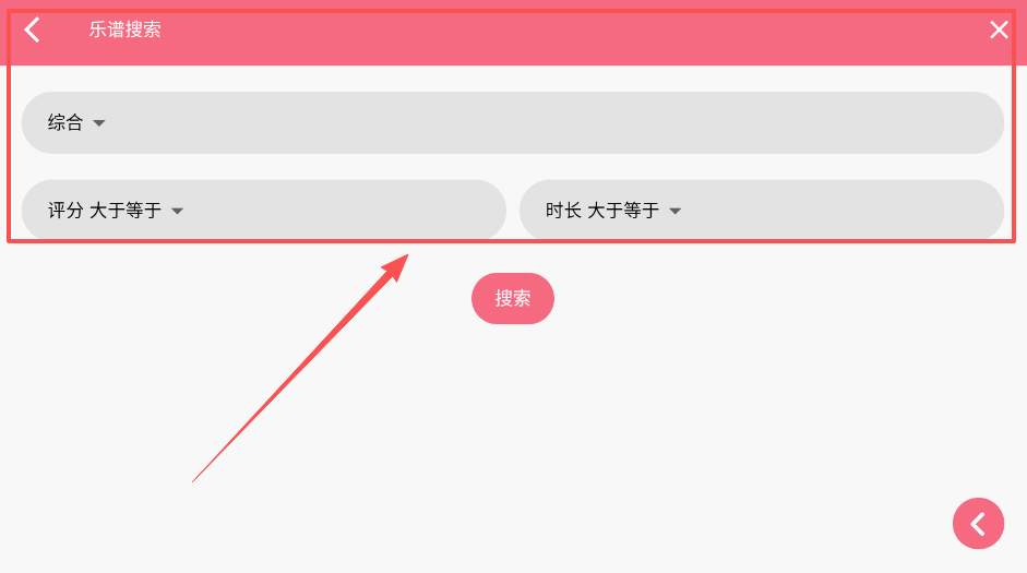 2、想要精准找到特定曲谱的话,你可以使用乐谱搜索功能,通过综合筛选、评分条件或时长范围来缩小查找范围。