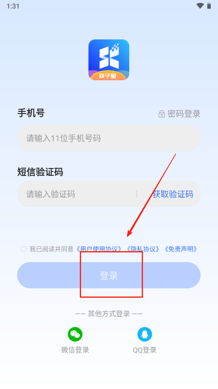 3、输入手机号和验证码登录:点击“登录”按钮完成登录操作。
