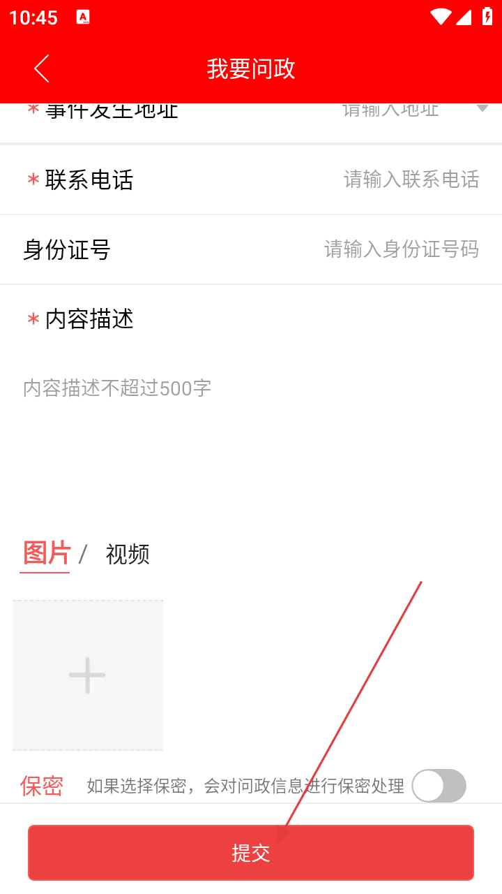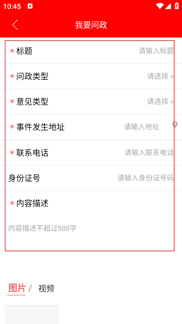 2、在问政页面,点击【我要问政】,进入问政内容填写界面。