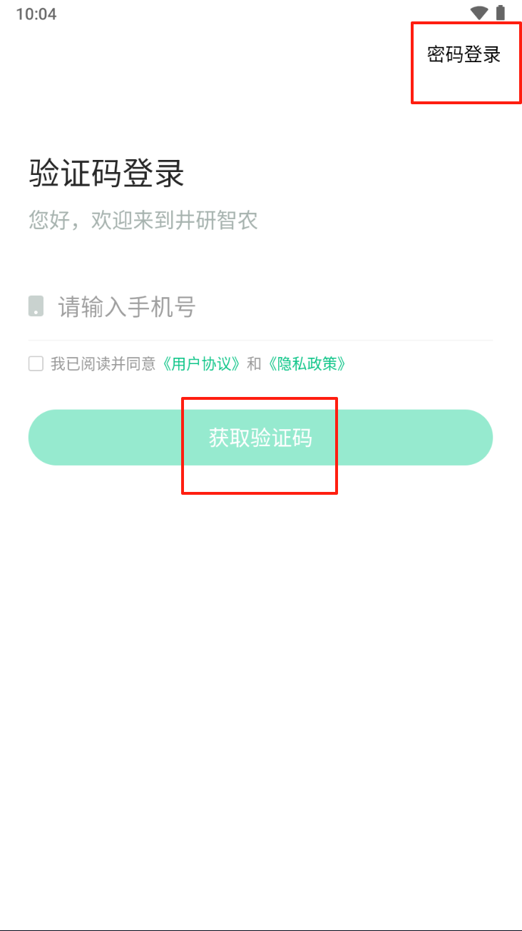 4、选择登录方式:在验证码登录页面选择“密码登录”或获取验证码进行登录。