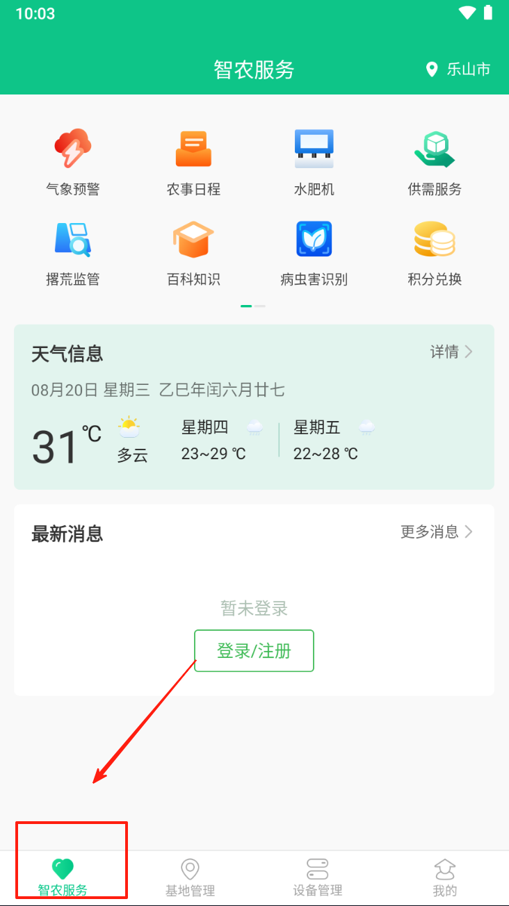 2、访问智农服务:点击底部导航栏的“智农服务”图标,进入服务页面。