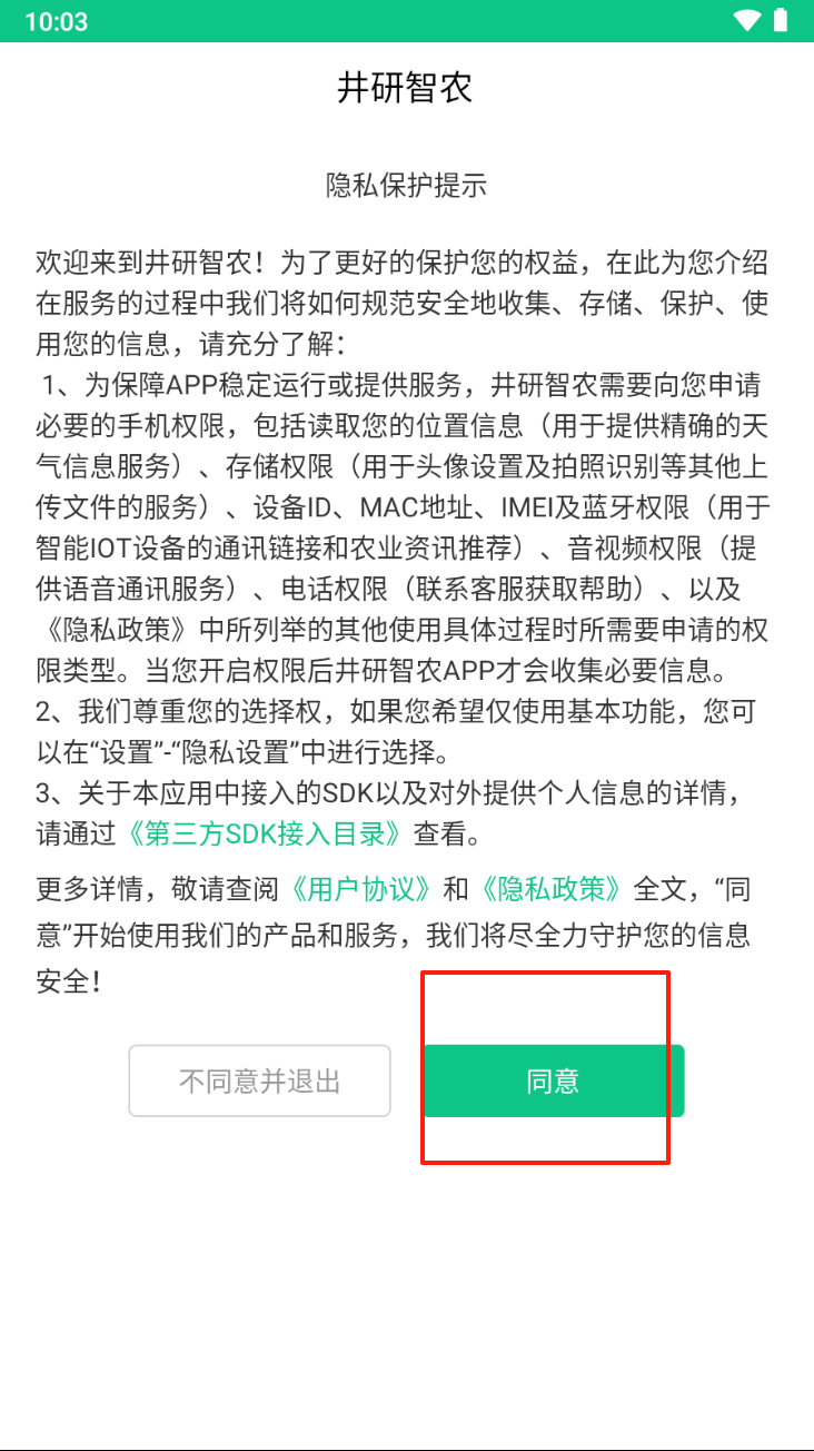 1、同意隐私政策:阅读并同意隐私保护提示中的用户协议和隐私政策。