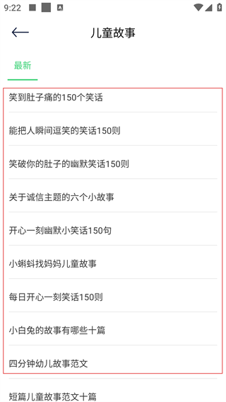 3、在儿童故事列表界面,选择感兴趣的儿童故事,如《笑到肚子痛的150个笑话》。