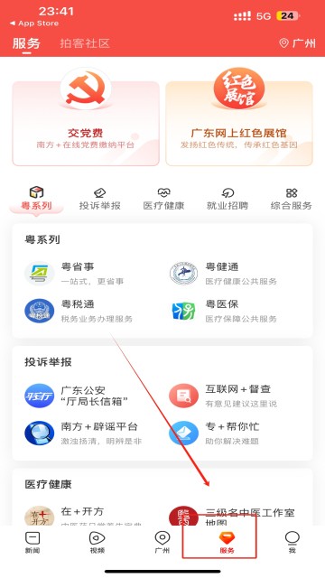 3、使用服务:点击底部导航栏的“服务”图标,访问各种便民服务。