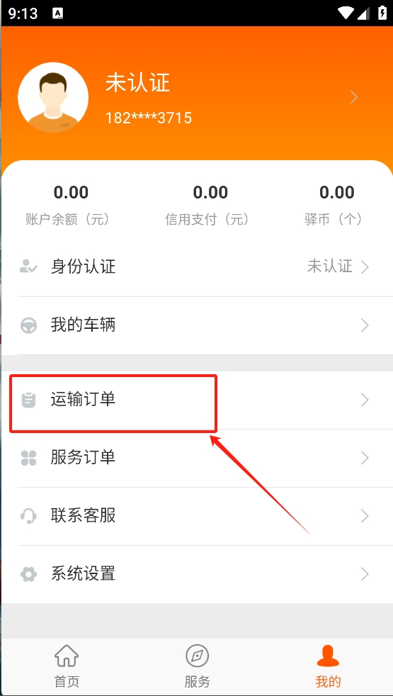 3、然后,进入“我的”页面,点击“运输订单”查看和管理您的物流订单。