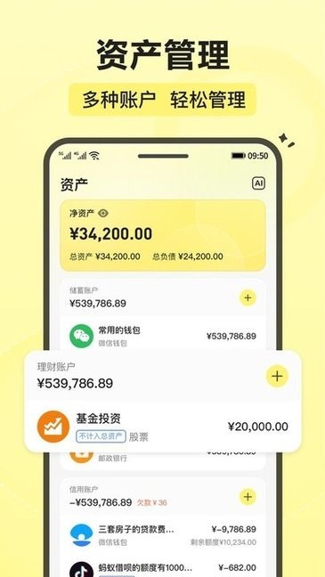 3、点击“资产”图标管理您的储蓄、信用和理财账户。