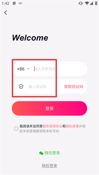 3、进入登录页面后,需在【+86】后的输入框填写手机号,再获取并填写【验证码】,准备完成登录操作。