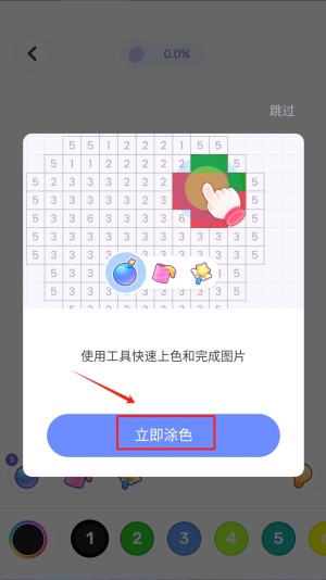 3、然后,在编辑界面中,点击“立即涂色”按钮开始对图案进行填色。