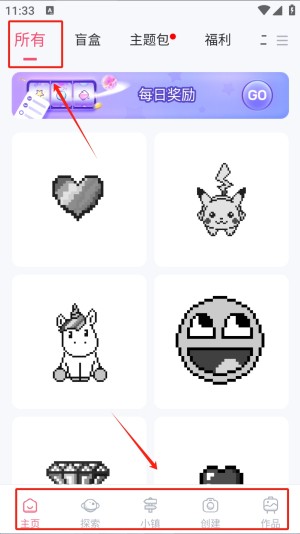 2、接着,选择一个您感兴趣的图案,例如像素风格的图案,然后点击“作品”按钮进入编辑界面。