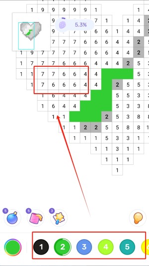 4、最后,根据数字提示选择相应的颜色,并在对应的数字区域上色,完成您的艺术作品。