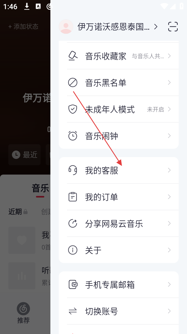 2、展开菜单后,找到【我的客服】选项并点击,进入客服服务页面。