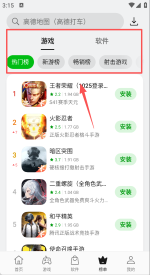 3、进游戏热门榜选王者荣耀,点安装立刻登录S41新赛季。